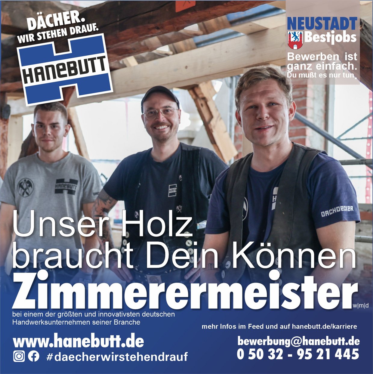 der seine Erfahrung bei uns einbringen will und auf unseren Baustellen alles gibt. Du wirst bei uns einen krisenfesten Job mit Perspektiven, leistungsgerechter, pünktlicher Bezahlung und einer Menge Extras erhalten. Das Unternehmen Hanebutt ist seit mehr als neun Jahrzehnten in ganz Norddeutschland sehr erfolgreich im Bauwesen tätig. Schwerpunkte Dachdeckerei, Zimmerei und Klempnerei. Am besten einfach anrufen oder eine Mail schreiben.